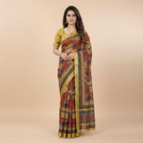 Midnight Blue Abstract Brushstroke Chiffon Silk Saree with Mosaic Borders